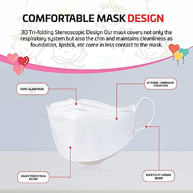 Korean High Quality Filter Non-Woven Material Made in Korea and Imported Adjustable closure ✅ BEST KIDS PROTECTION – This Extra Small KF94 disposable face mask is made with high quality MB fabric that is effective. Made with a triple-layered electrostatic filtration system, this product will filter at least 94% of PM2.5 to protect the wearer from exposure to harmful dust. This children's mask is very effective in protecting from dust, air pollution, and more. Protect your children’s health with these disposable face masks for kids. ✅ EASY BREATHING : GoodDay KF94 kids face masks fit securely on your face so that you can breath easily and keep the mask on all day without discomfort. ✅ COMFORTABLE FORM FITTING DESIGN : GoodDay kids disposable face masks have a 3D flat-fold(tri-fold) design that prevents air leakage. Use the nose bridge The adjustable nose bridge helps to ensure a secure fit and stays on your face without slipping or falling off. The perfect fit prevents fogging up your glasses. ✅ EVERYDAY USE & BACK TO SCHOOL: This Kids Mask is suitable for school, shopping, cycling, camping, running, travel, climbing and daily use. This mask will be your children's favorite mask providing them with a comfortable and cute design! ✅ KFDA APPROVED: GoodDay safety kids masks are manufactured in South Korea. The masks are KFDA approved.