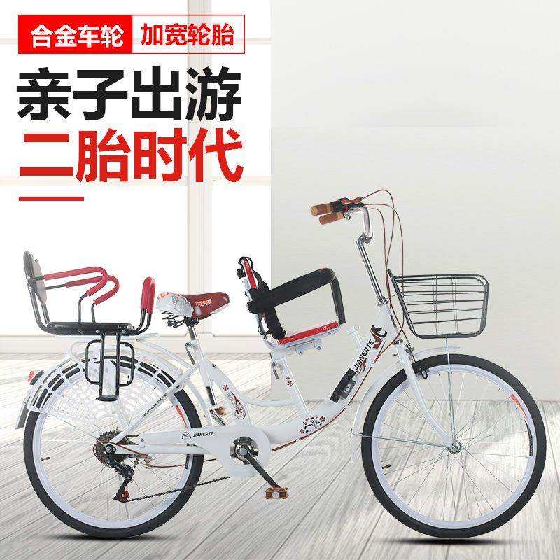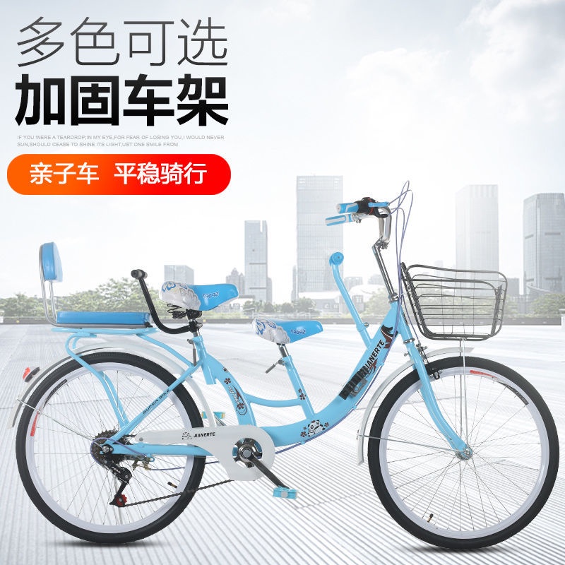 (in Stock) Parent-Child Bicycle Female Adult with Kid Children Solid Tire Bicycle 22/24-Inch Adult Pick-up Child Mother and Child Car
