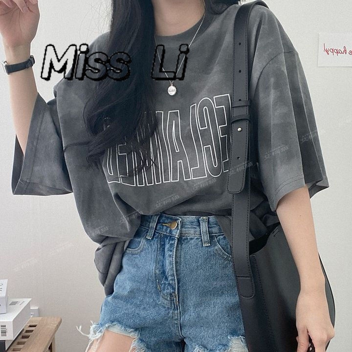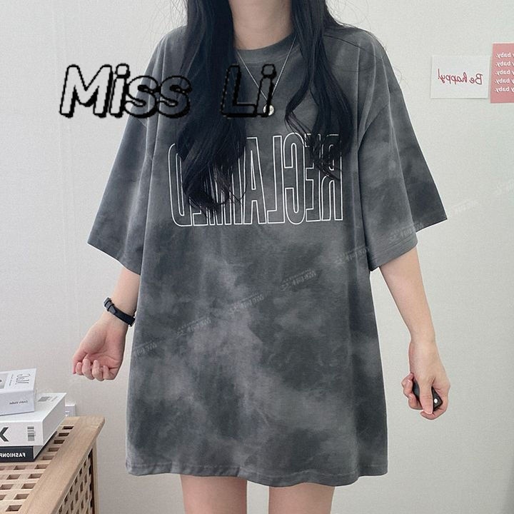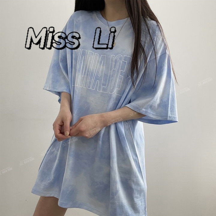 「Miss Li」台灣出貨短袖t恤女 大碼女裝 韓版 寬松 設計感小眾 中長款上衣 oversize 下半身失蹤 女生衣