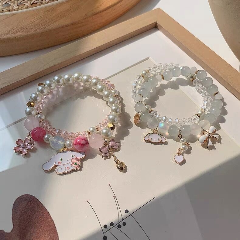 Appearance:white and light blue beads with a cinnamonroll charm, a white ribbon charm, and two charms saying handmade Material Quality:cute, simple Colour:light blue, white, and baby blue(?) Overall, it's so cute and comfortable. I didn't notice that it was actually two bracelets until I received it. That's all I can say but love how the bracelets turned out. One day I might buy another bracelet in this shop ^^