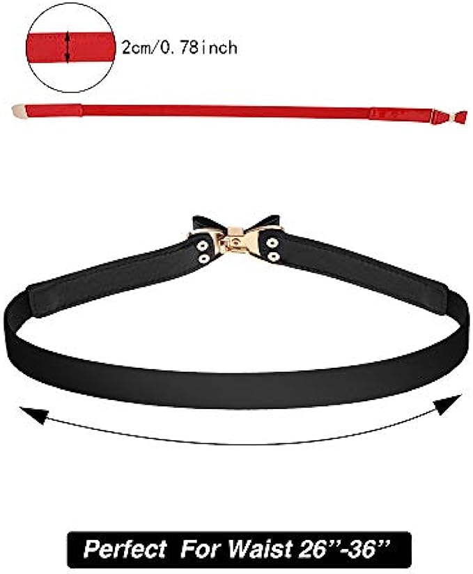 buckle closure Dry Cloth Clean Good elasticity: this belt is approx. 25.6 inches/ 65 cm long, it has good elasticity and can be stretched to about 31.5 inches/ 80 cm, suitable for most women and girls' waist Skinny belt: belt width is 0.8 inch/ 2 cm, and the decorative bow is 1.2 inches/ 3 cm wide, the skinny design makes the belt elegant and beautiful, which is a nice accessory for dress Easy to put on: its metal clasp allows you easily put it on and off, and the elastic band brings you comfortable experience; Material: faux leather, elastic band and metal buckle Fashion accessories: use it to change your waist line and improve your overall styling, the belt can go well with you blouse, dress, skirt, jeans or sweater, making you more attractive Various styles: coming with various styles skinny waist belt as pictures shown, can meet your needs in the daily life, it suitable for daily wearing or attending an important occasion