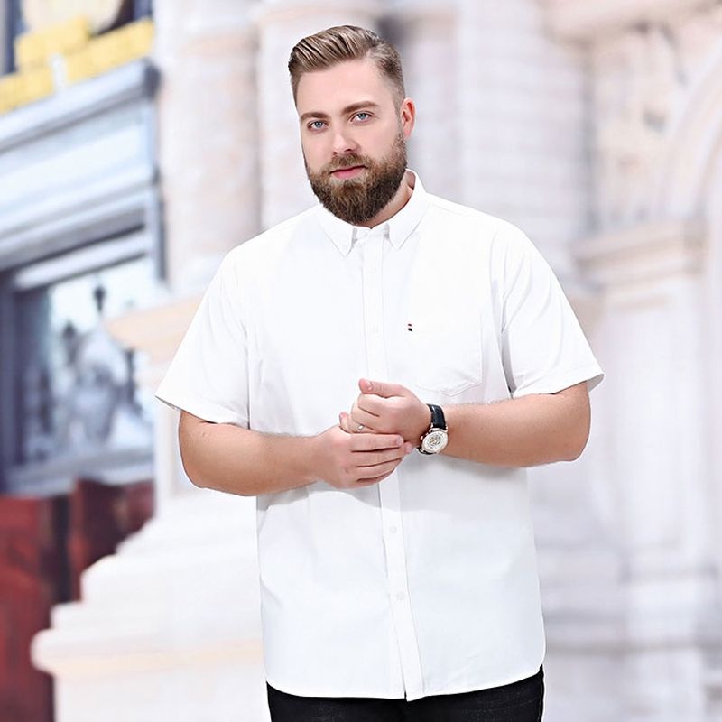 80-175KG PLUS SIZE Men Cotton Large Size Business Short Sleeve Casual Solid Color Wedding Shirt