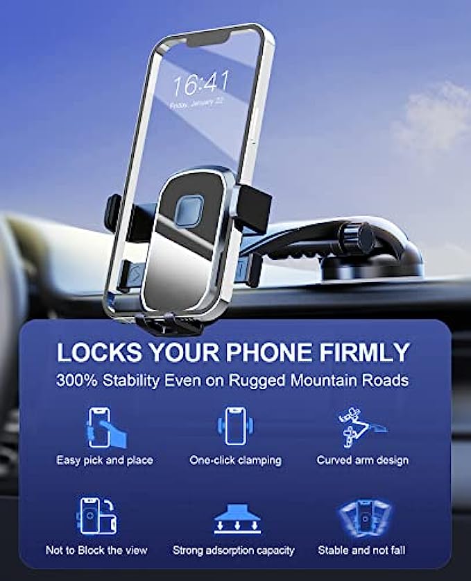 Carrkoopy Phone Mount for Car Dashboard,Car Phone Holder Mount,Cell Phone Holder Car Dashboard Windshield Anti-Shake Stabilizer Car Mount for iPhone All iOS Android Phone