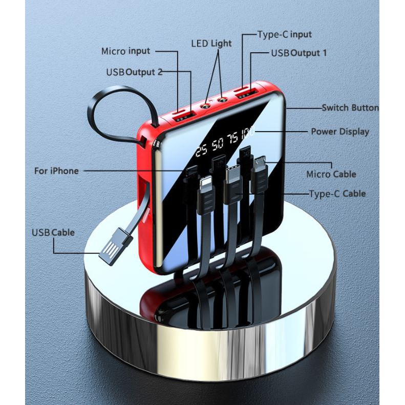 Fast Charging Power Bank Cable Powerbank 20000 Mah 5 in 1