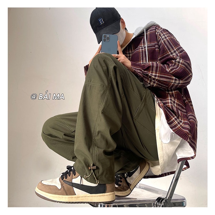 Functional Jacket Men Overalls Vintage Straight Casual Trousers
