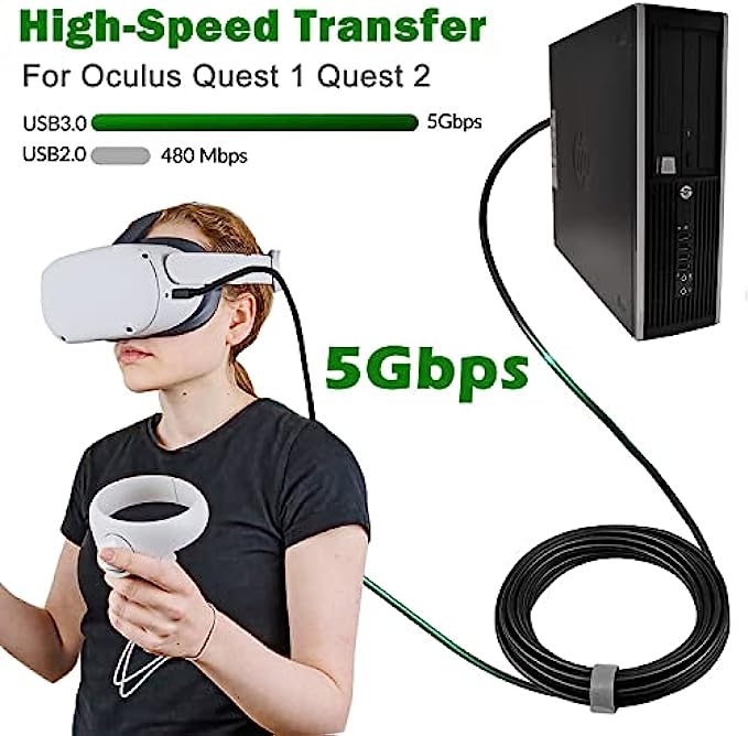 • Compatible For Oculus Quest 1/2 - This Link Cable as a VR headset link cable perfectly connects the Quest / Quest 2 to the gaming PC, allows you to play Steam VR games and all Oculus Rift apps, providing the best gaming experience.
