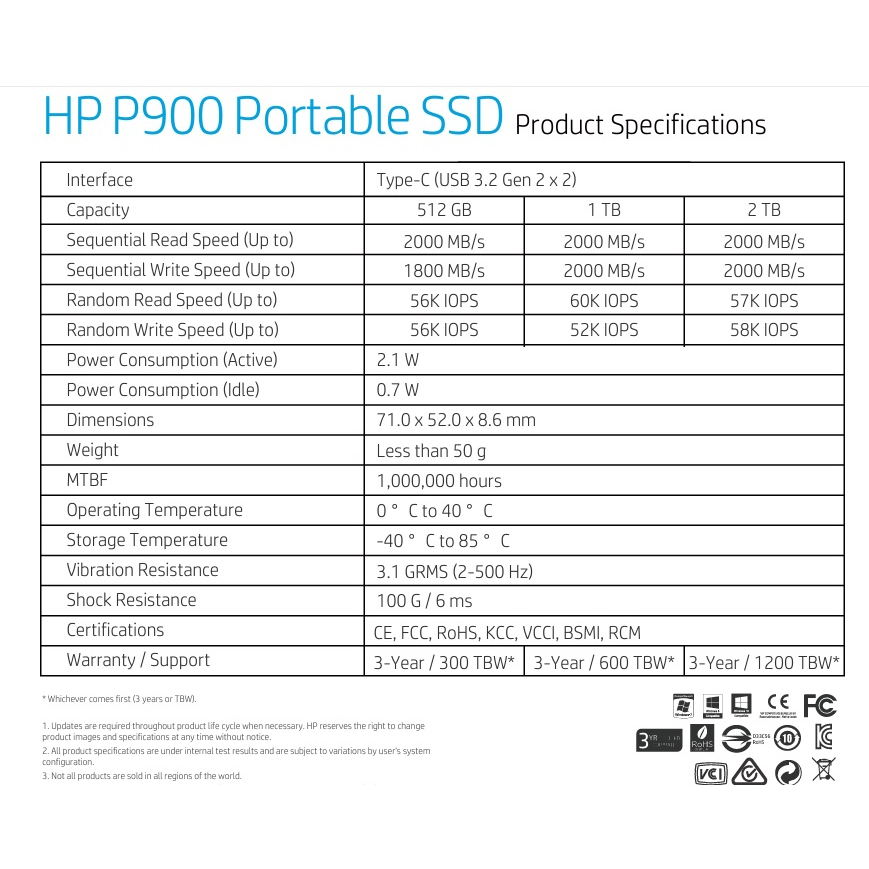 HP Portable External SSD P900 512GB/1TB/2TB Super Slim USB 3.2 Type-C New Launch