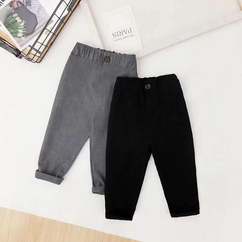 Kids Pants Boy British Black Pants Baby Trousers Elastic Waist Small Feet