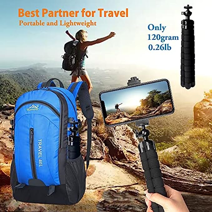 • 【Lightweight and Travel Tripod】 mini tripod only 120gram(0.26lb) , you can put it in suitcase, backbag, even your pocket for traveling, hiking or camping, or even working as a selfie stick