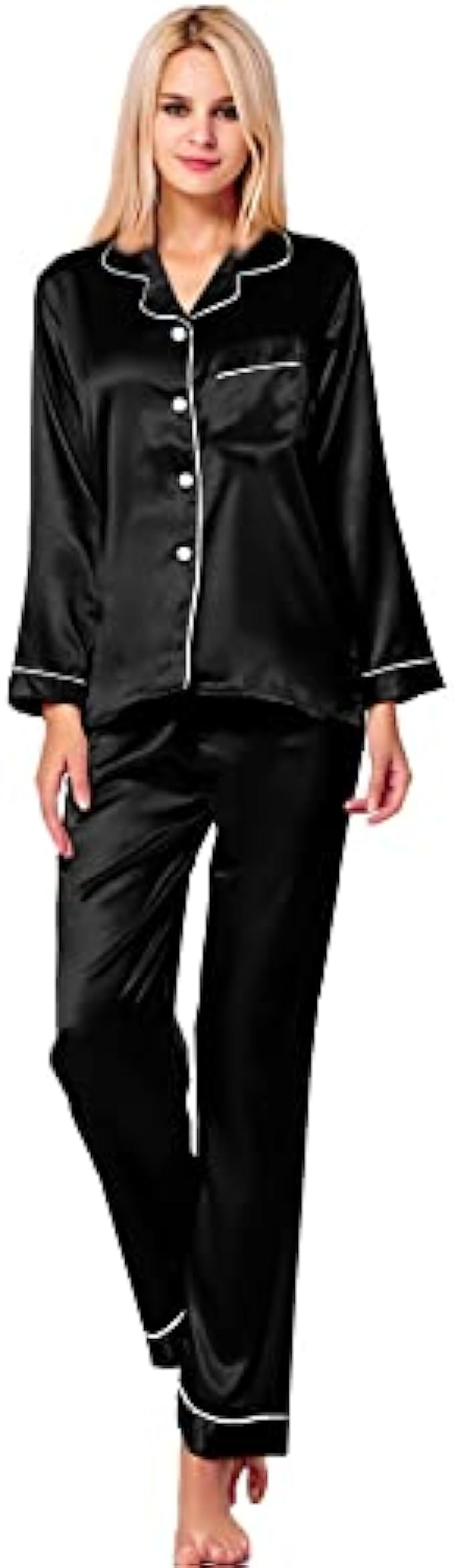 • Occasion: Women's Long Sleeve Silk Satin Pajamas Set, which is suitable for daily wearing and easy to match. Comfortable and suitable for lounging and sleeping, pajama party, girls day, bridal sleepwear, indoor, living room, bedroom, hotel, vacation, travel, and daily sleepwear.