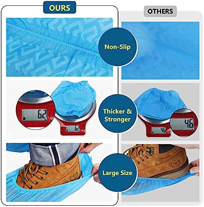• High Quality: Made of 6.2g high quality non-woven material, which makes the shoe cover thicker, stronger and more durable, more breathable, no odor, anti-static, noise reduction.Our protective booties will protect homes, carpets hardwood floors surface and more!