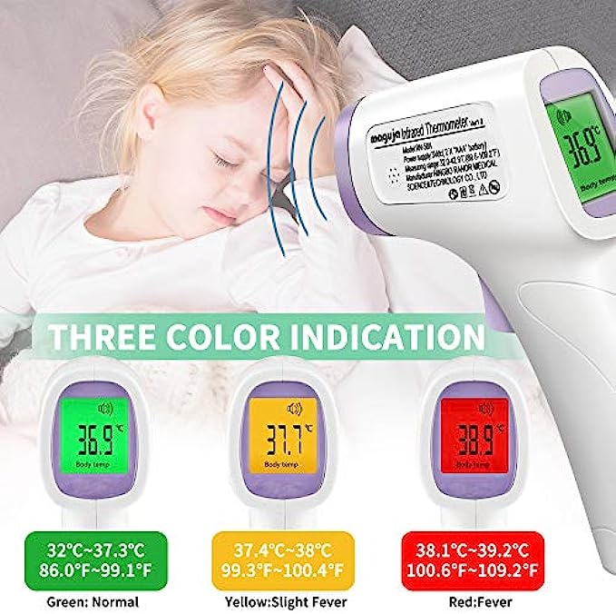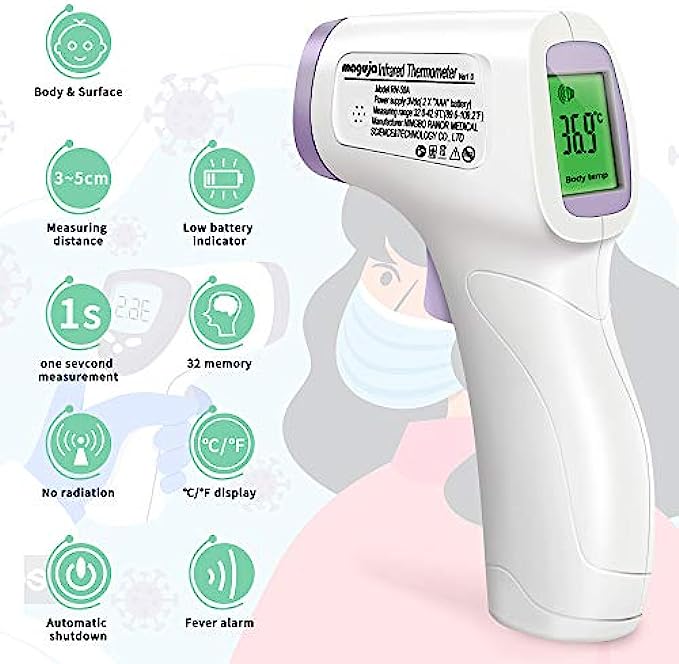 • ➤【Friendly Design】The no-touch digital thermometer has a non-slip design, and the LCD display is clear and easy to read, the display can be used at night without in light. The thermometer is equipped with an internal memory that can store up to 40 sets of data readings that allows you to keep track of the historical temperature changes for you and your family.