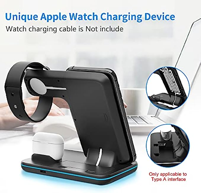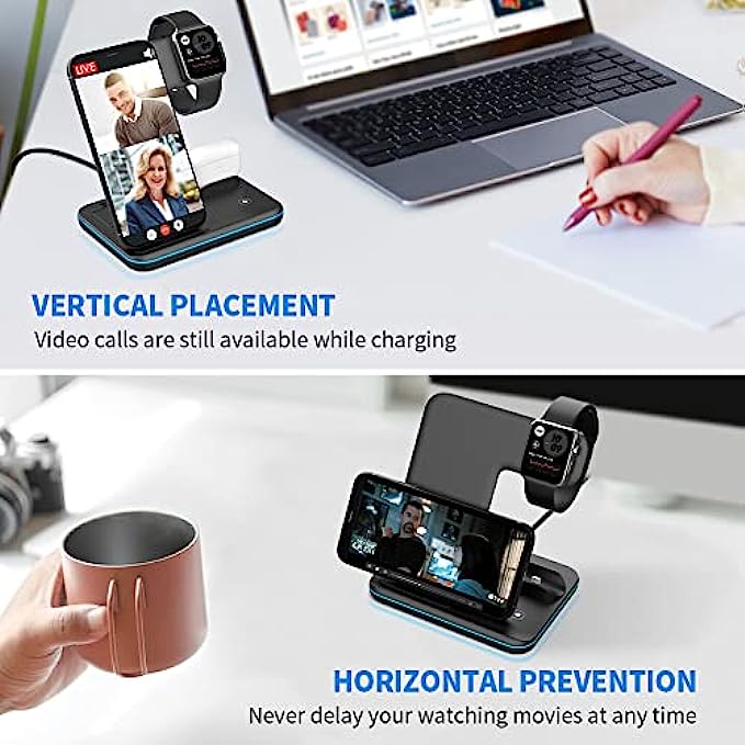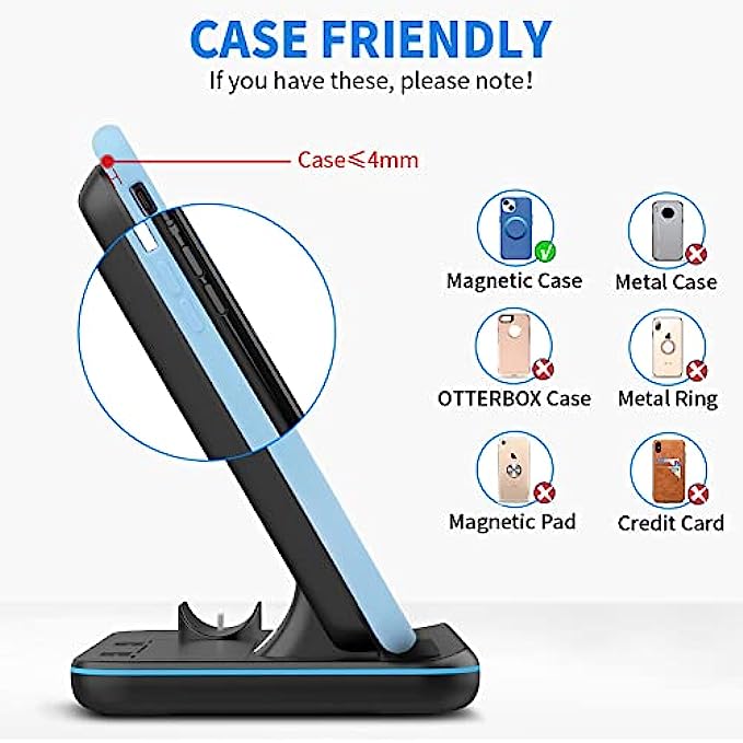 • 【Anti-slip Design&Multi-function Observation】: The charging base with anti-slip silicone design so that the charger will not move or flip, to ensure that your phone is protected when charging. 3&1 wireless charger supports vertical or horizontal wireless charging with a tilt angle design for better viewing of video or tracking information while charging.