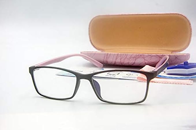 Women Anti Blue Light Glasses Block Eye Strain Glare with Case Tester, Gaming Computer Glasses Blue Light Block Glasses Filter UV Blocker Clear Lens Small Face Narrow Rectangle Nerd Frame Pink Black