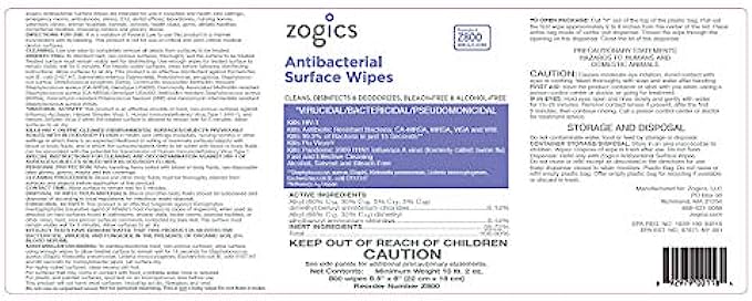 EPA DISINFECTANT WIPES: Zogics EPA-registered disinfecting surface wipes are created with a powerful antibacterial formula to kill 99.9% of germs, of germs, viruses, and bacteria in just 15 seconds, and is effective against H1N1, MRSA, Flu, Strep, Salmonella, HIV-1, E coli, VISA and VRE, and many more. MULTI-SURFACE USE: Our anti-bacterial wipe is the ultimate tool to thoroughly clean and disinfect a variety of surfaces, including countertops, door handles, gym equipment, and plenty of other hard, nonporous surfaces. These surface disinfectant wipes are strong and made with durable fibers; they get the job done and leave behind a crisp, fresh scent. SAFE AND EFFECTIVE: Our wet wipes are saturated the perfect amount with our unique formula that is made without the use of bleach, alcohol, and phenol while still being highly effective at cleaning and sanitizing a space. LARGE, DISINFECTING WIPES BULK: Zogics surface sanitizing wipes are large wipes made from durable fibers. Each bulk wipe rolls fit most standard dispensers, making them a necessary cleaning tool for everything from gyms to nursing homes, hospitals, schools, and offices. PROFESSIONAL, AFFORDABLE SANITIZING SOLUTIONS: Zogics was created with our customers in mind. Our entire catalog of cleaning products focuses on bringing the highest quality, professional products at affordable prices to industries ranging from fitness and health to government to hospitality.