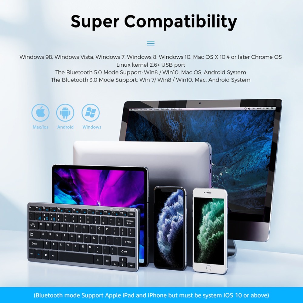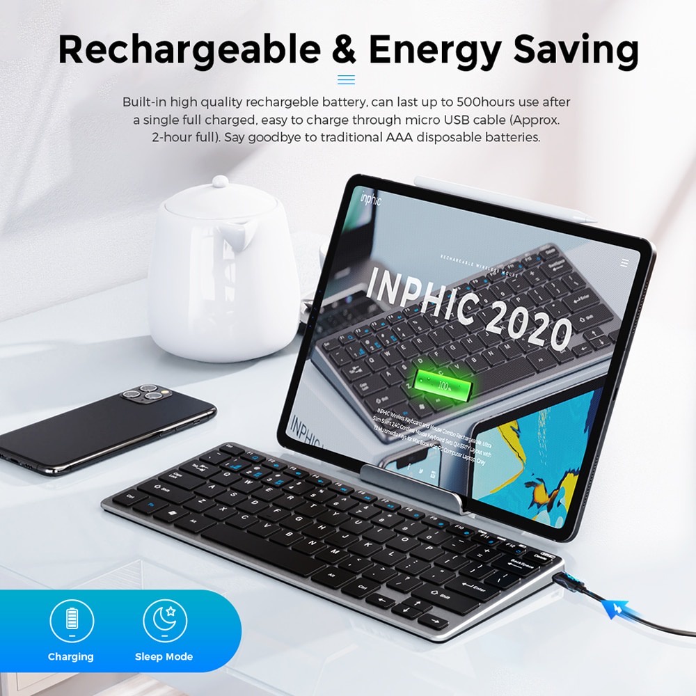 Bluetooth Wireless Keyboard Rechargeable Compact Slim 3 Modes Wireless Mouse