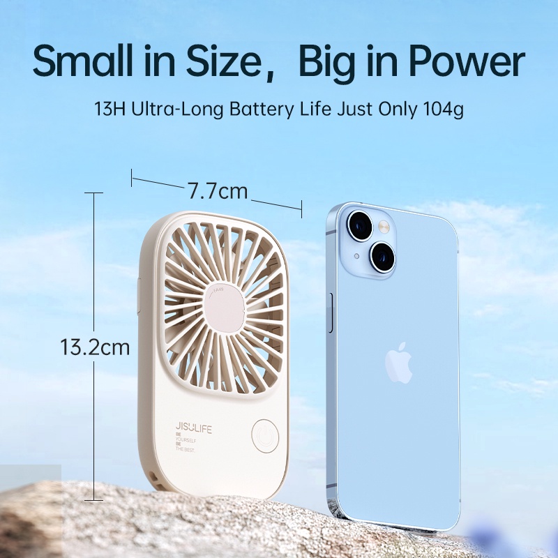 JISULIFE Pocket Mini Fan Portable Handheld Slim Safety Lock 3 Speeds Strong Wind Free Landyard