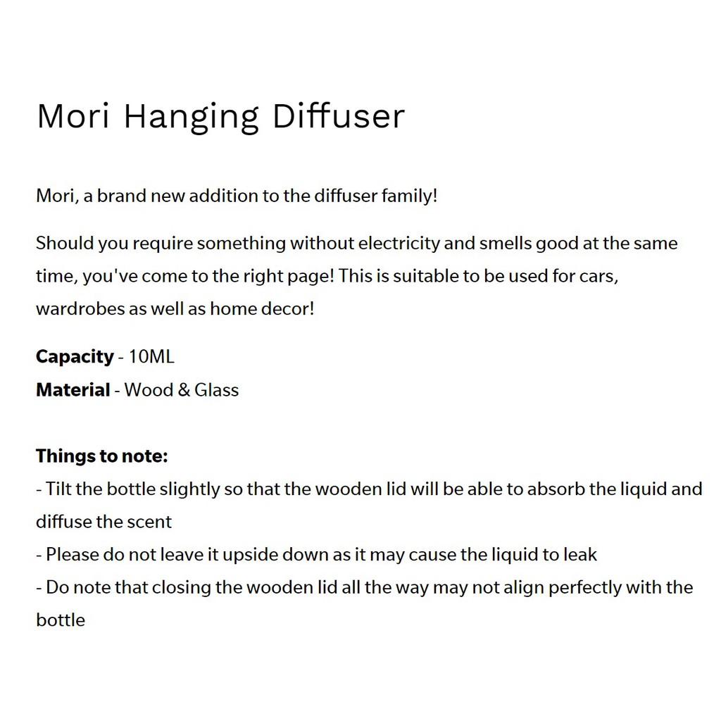 Kirona Scent Mori Hanging Perfume - Hotel Scent - Car Air Fresheners - 10ml - Aromatherapy Fragrance - Singapore Made