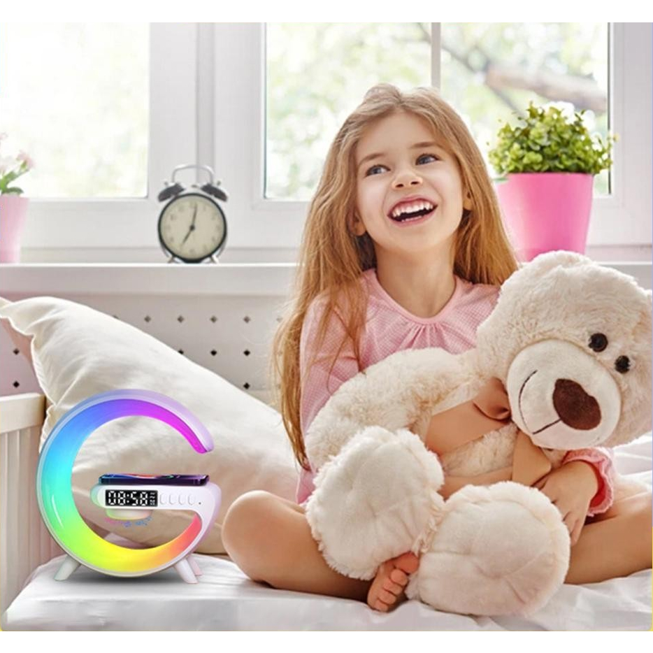 Mini Bluetooth Speaker Multifunctional Wireless Charger Speaker with Alarm Clock and Color Lights Fast Charging Speaker
