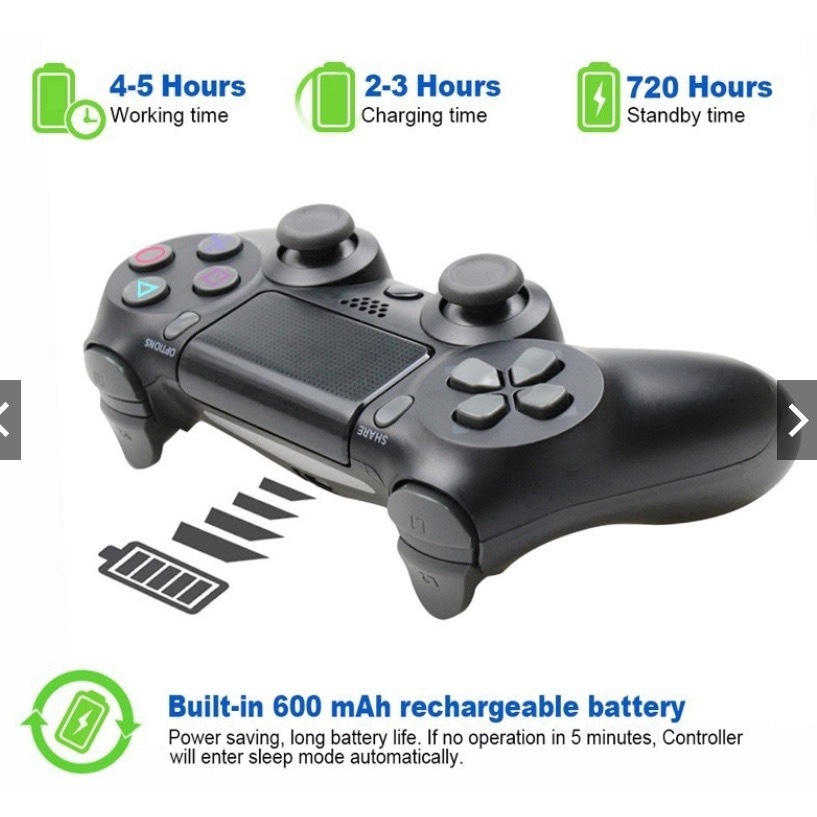 I recently purchased PS4 controllers, and they’ve been fantastic! The build quality is excellent, with durable materials that feel sturdy during long gaming sessions. The buttons and joysticks are responsive and smooth, providing precise control for everything from fast-paced action games to casual platformers. The ergonomic design is a standout feature – it fits perfectly in my hands, and even after hours of use, it remains comfortable. The battery life is impressive, lasting several hours on a single charge, and the charging process is quick and hassle-free. Whether you’re replacing an old controller or adding extras for multiplayer gaming, these PS4 controllers are worth every penny. Highly recommended for both casual and hardcore gamers!