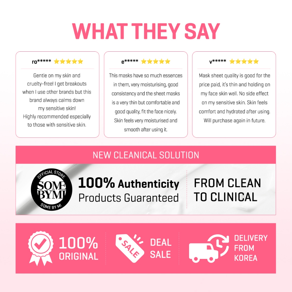 Formulation:good Performance:good Suitability:good Bought 10pcs. Used 4. So far so good. No irritation to my sensitive skin. Used this facial sheet tgt with the acne sos starter kit for 4 days now. So far it blends well, no itches. Will monitor and def purchase again and would be my go-to product if this works!! Thanks SomebyMi!!!! ❤️