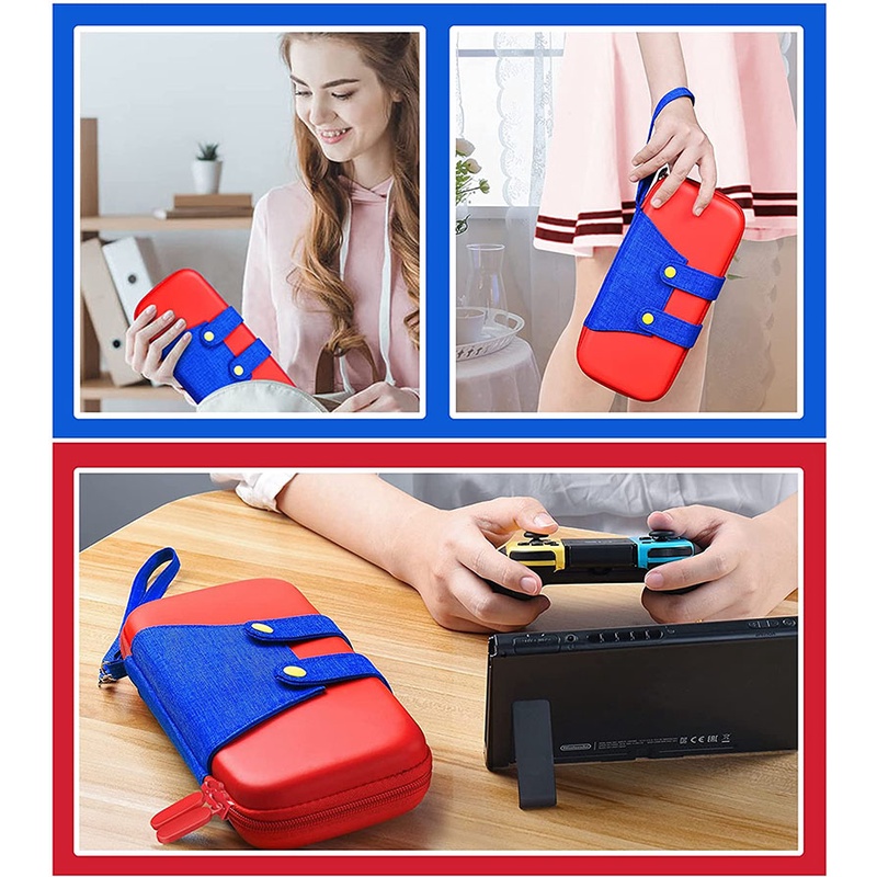 Came with free screen protector that’s easy enough to apply and free thumb grips! One set is cat print and another set is some normal pink one. The case is hard enough and can fit my switch just fine. Came with two straps, one long and one wrist length. Worth it!